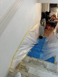 お住まいの大切な家具や、お住まい自体に水がかかってしまうことなないよう、始める前には養生をおこなわせていただきます。