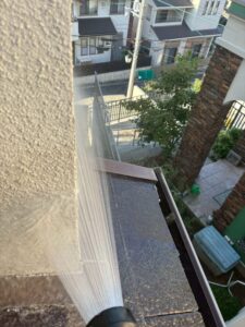 雨漏りは窓周りにはクラックや、下屋根の取り合い部分など疑わしい部分をすべて、いろんな可能性を含めた散水検査をおこなうことで、はじめて発生源を正確に突き止めることができます。
