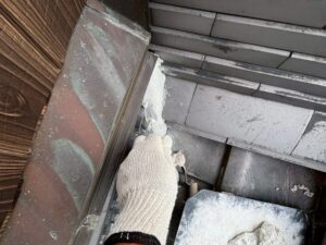 漆喰を撤去したら見えてきますので、そこを基に、均一な厚みで新しい漆喰を詰めていきます。