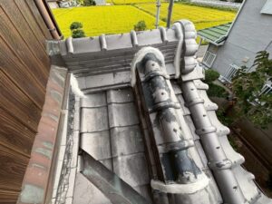 何枚も薄めの瓦が積み重ねられ、末端には重い瓦が付けられており、そのバランスを安全に保つために漆喰の質が関わっています。