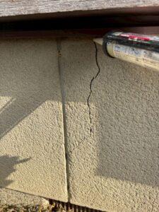 外壁部にあった割れ目(クラック)を変成シリコンで埋めていきます。