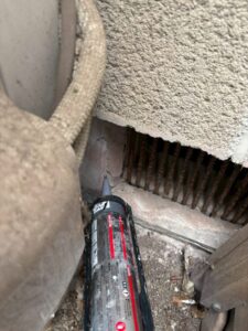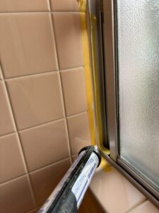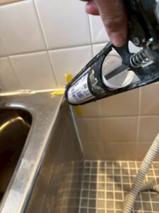 クラックが発生しているところがあったので、水回り用のシリコンで補強して、水漏れを防ぎます。